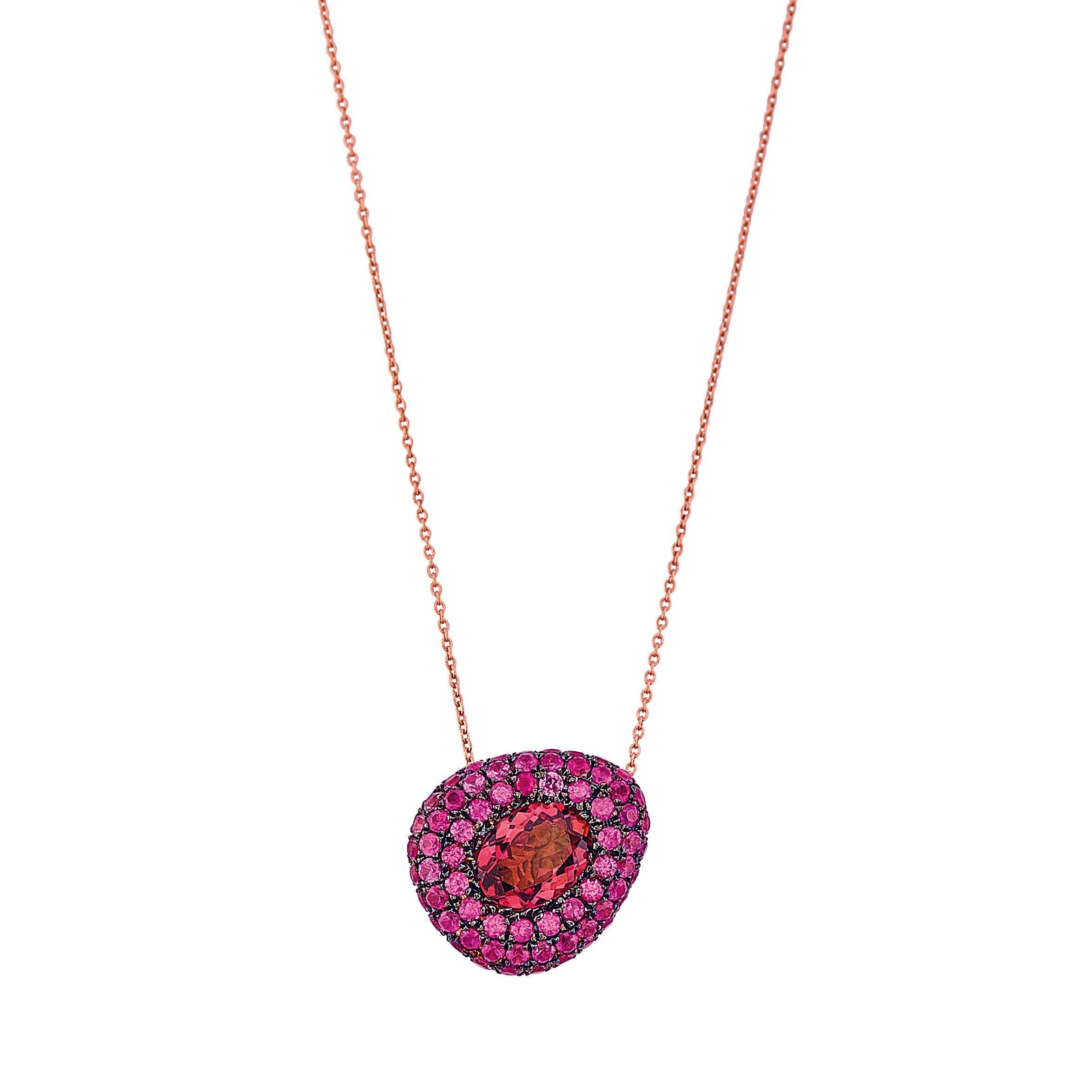 Round Medallion Necklace with Pink and Purple Crystals ( with Claw Detail)