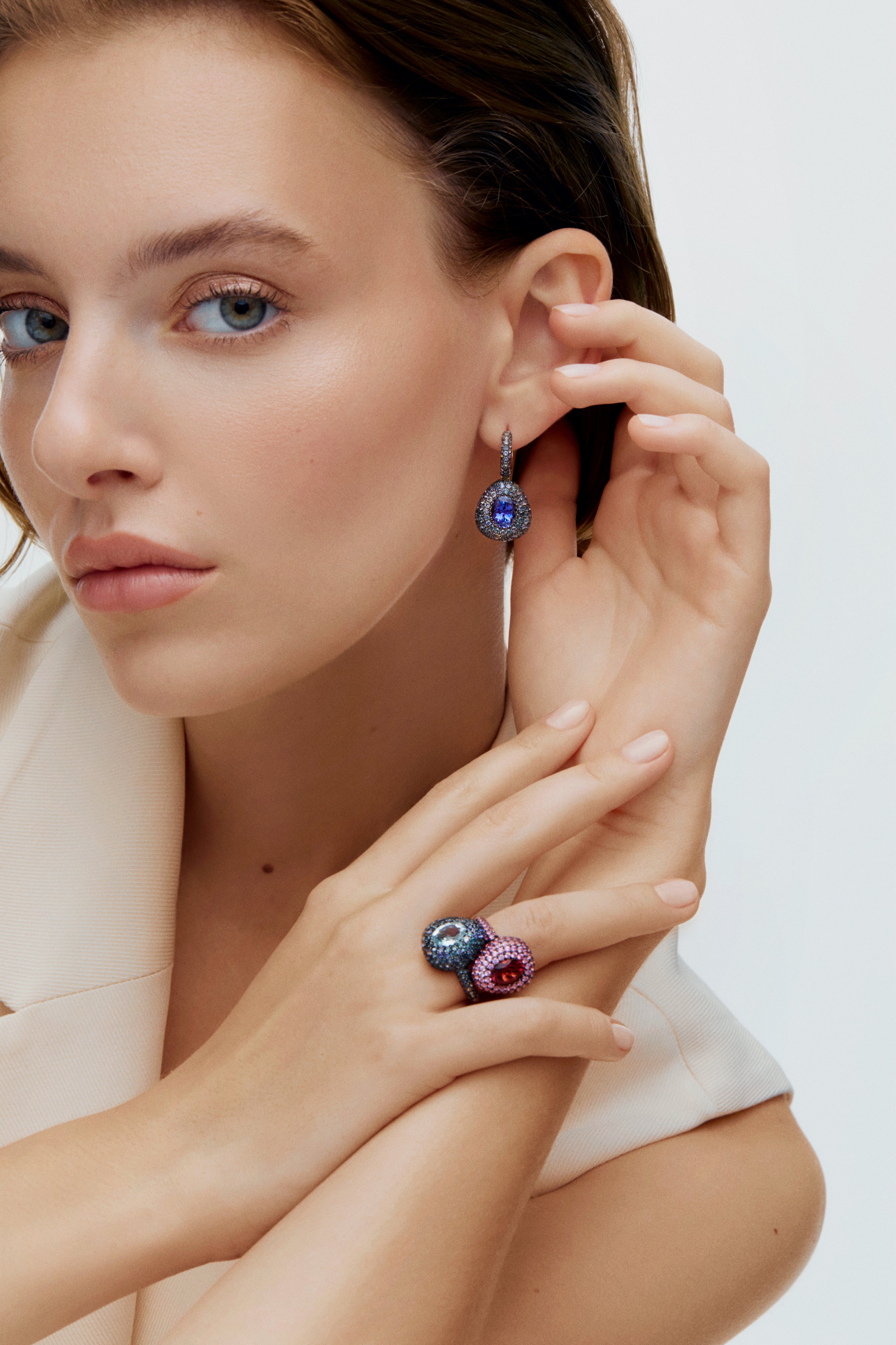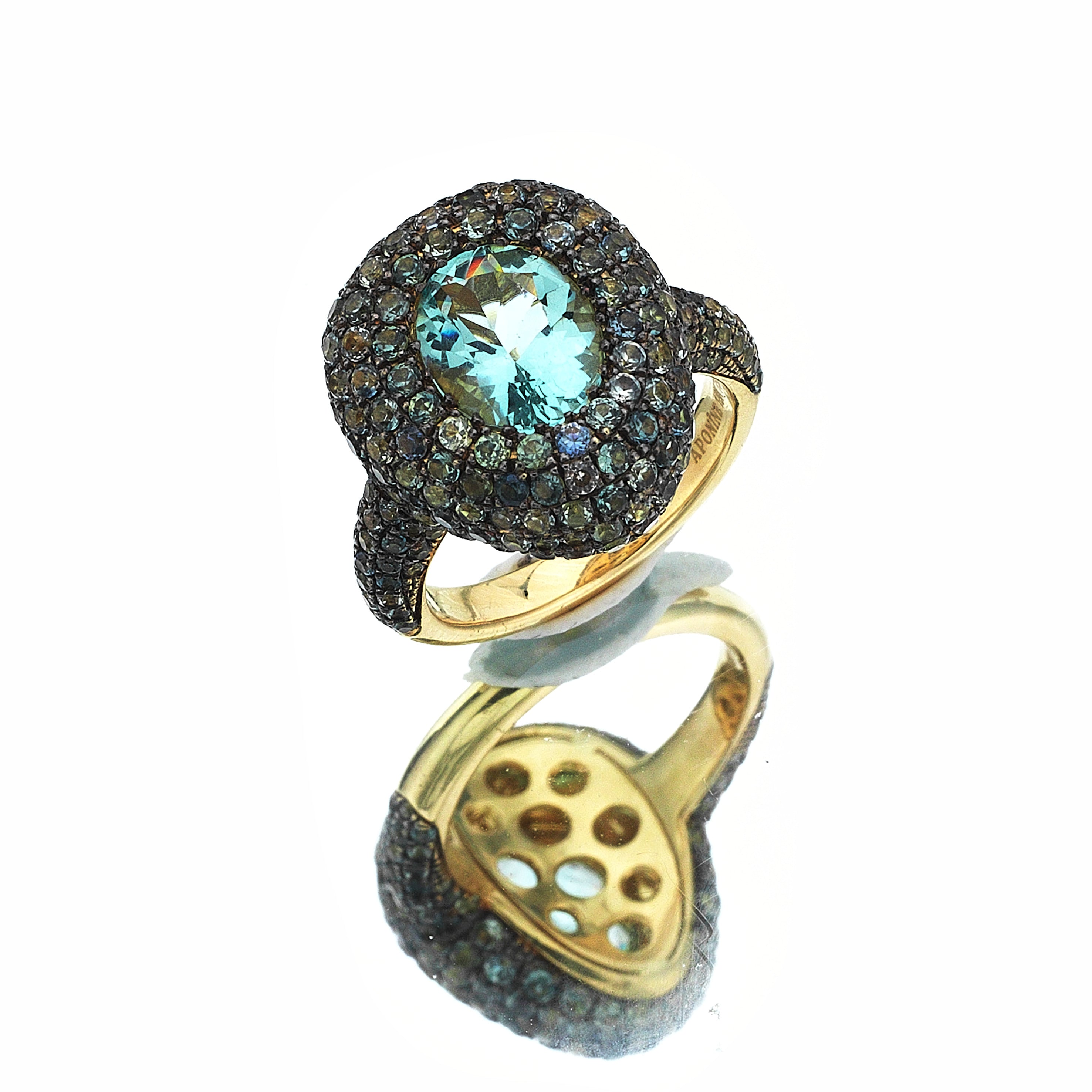 Pebble Ring - Smoky Quartz & Champagne Diamonds